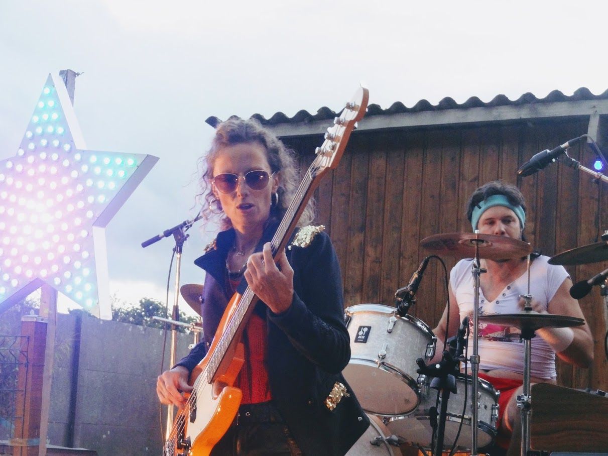 L'ineffable Colin le suit pour se taper un plongeon dans une piscine imaginaire avant de prendre place derrière des fûts ( pas de Coreff). L'arrivée de Dorothée Matthieu, alias la sexy Do Pinsard, bas résilles et mini-short en cuir a fait frémir un voisin, vite réprimandé par sa maman, elle, pas la mère de l'autre, a ramassé sa basse ( elle pianotera de temps en temps) et, enfin, l'aviateur d'Yvias apparaît.
